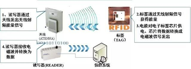 RFID的工作原理很簡單:標簽進入磁場后,讀寫器會感應(yīng)到標簽信號,標簽通過無線射頻信號獲得能量(無源標簽或被動標簽)或標簽主動發(fā)送某一頻率的信號(有源標簽或主動標簽),然后解讀器讀取電磁波并轉(zhuǎn)化為數(shù)據(jù),送至中央信息系統(tǒng)進行有關(guān)數(shù)據(jù)處理。