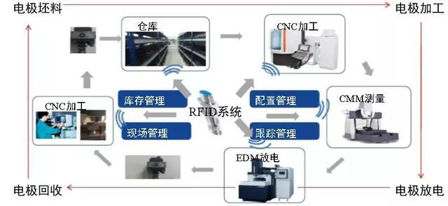 具體實現(xiàn)方式是對每個電極管安裝RFID標簽,從晶體管入庫、生產(chǎn)、測量、放電的全流程進行瓜農(nóng)空。通過對庫存、配置、現(xiàn)場的數(shù)據(jù)采集,從電極的設(shè)計延伸到制造、測量和使用的全過程,使數(shù)據(jù)和制造無縫交互,實現(xiàn)全流程的自動化,無人化